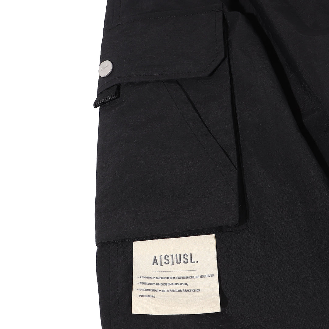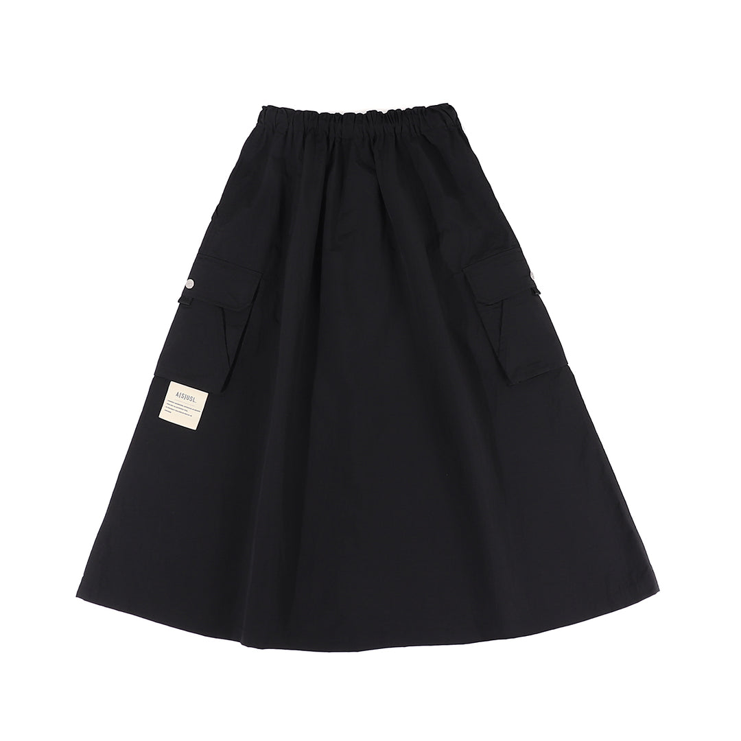 A[S]USL NYLON POCKETS FLARE SKIRT-BLACK