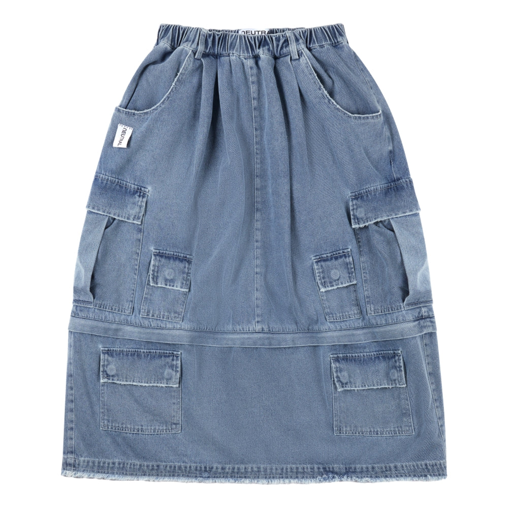 NEUTRAL SOCIETY DETACHABLE DENIM SKIRT-BLUE DENIM
