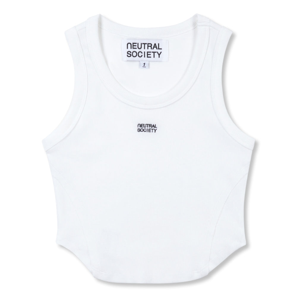 NEUTRAL SOCIETY RAW EDGE RIBBED TANK-WHITE