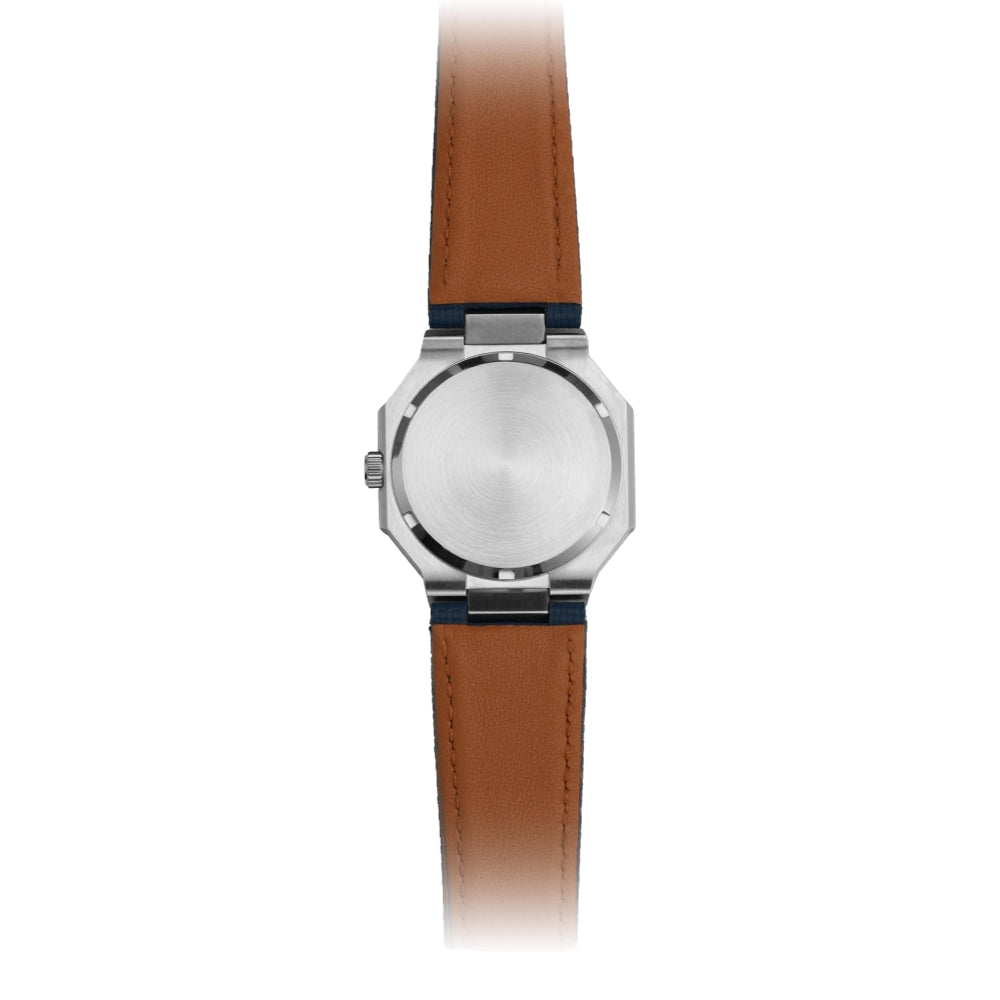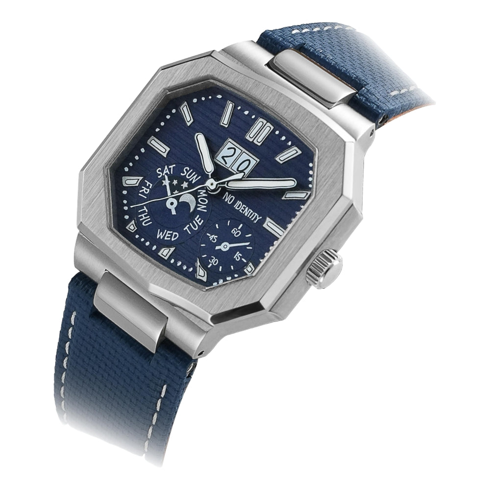 The Cuboid (Navy) embodies bold, avant-garde design with its octagonal case and deep navy textured dial, reflecting a strong architectural aesthetic. The artistic subdial patterns add depth and visual intrigue, while the refined texture shifts elegantly under different lighting. Paired with a sleek integrated strap, it seamlessly blends modern urban style with understated luxury, making it a statement piece for those with exceptional taste.