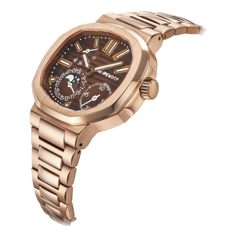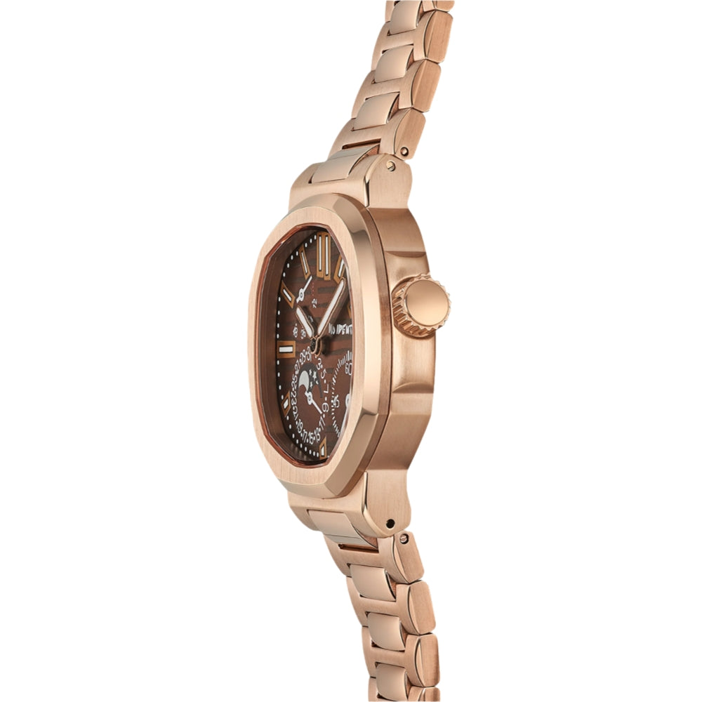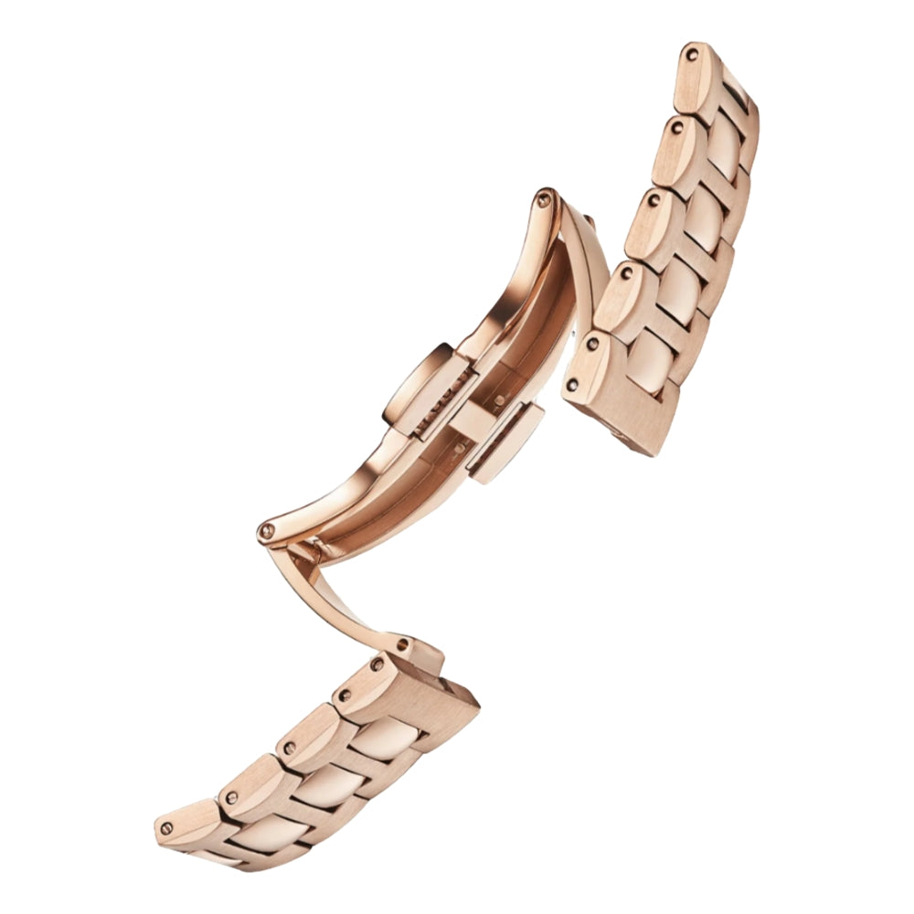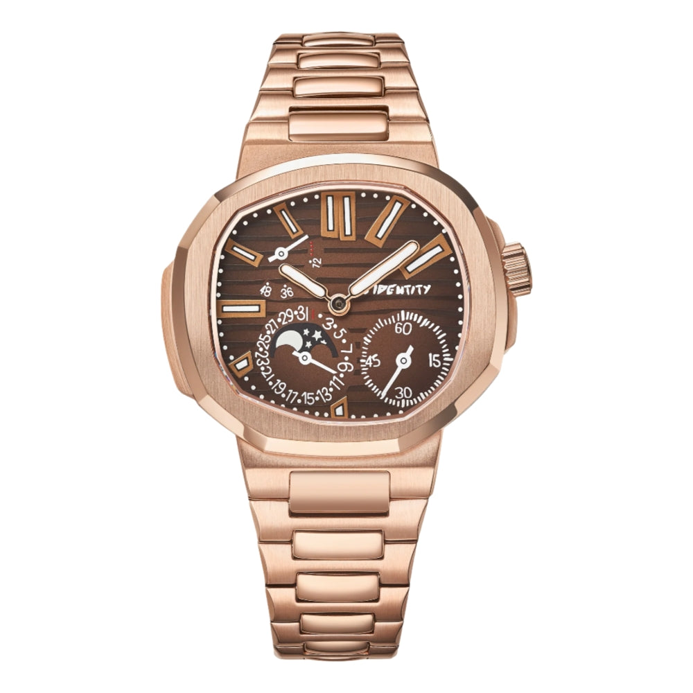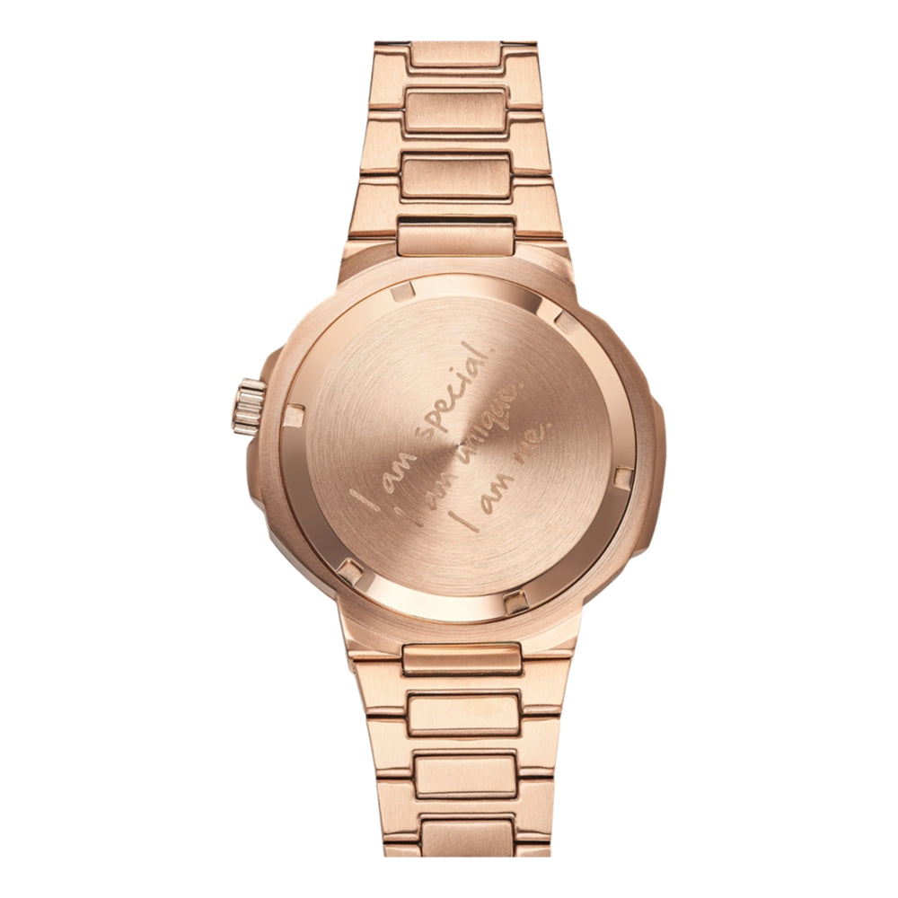 Our beautiful Burnt Caramel is perfect for those looking for a rose gold timepiece! Powered by the precise Miyota 9015 movement, this timepiece effortlessly blends reliability and elegance, ensuring you keep time in style. With its top-notch quality and modern design, this watch is all about luxury reimagined, adding a touch of glam to your everyday look.