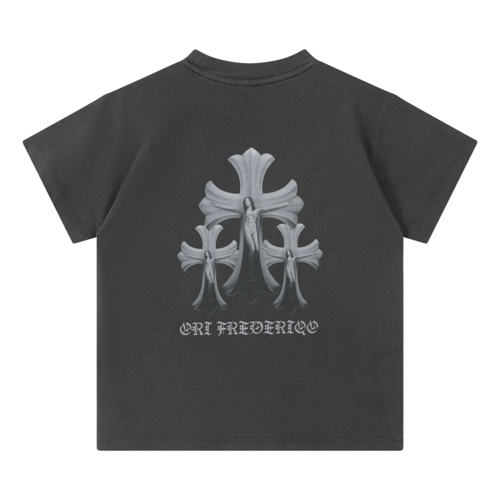 ORI FREDERIQO WOMEN PRINTED WASHED T-SHIRT-GREY