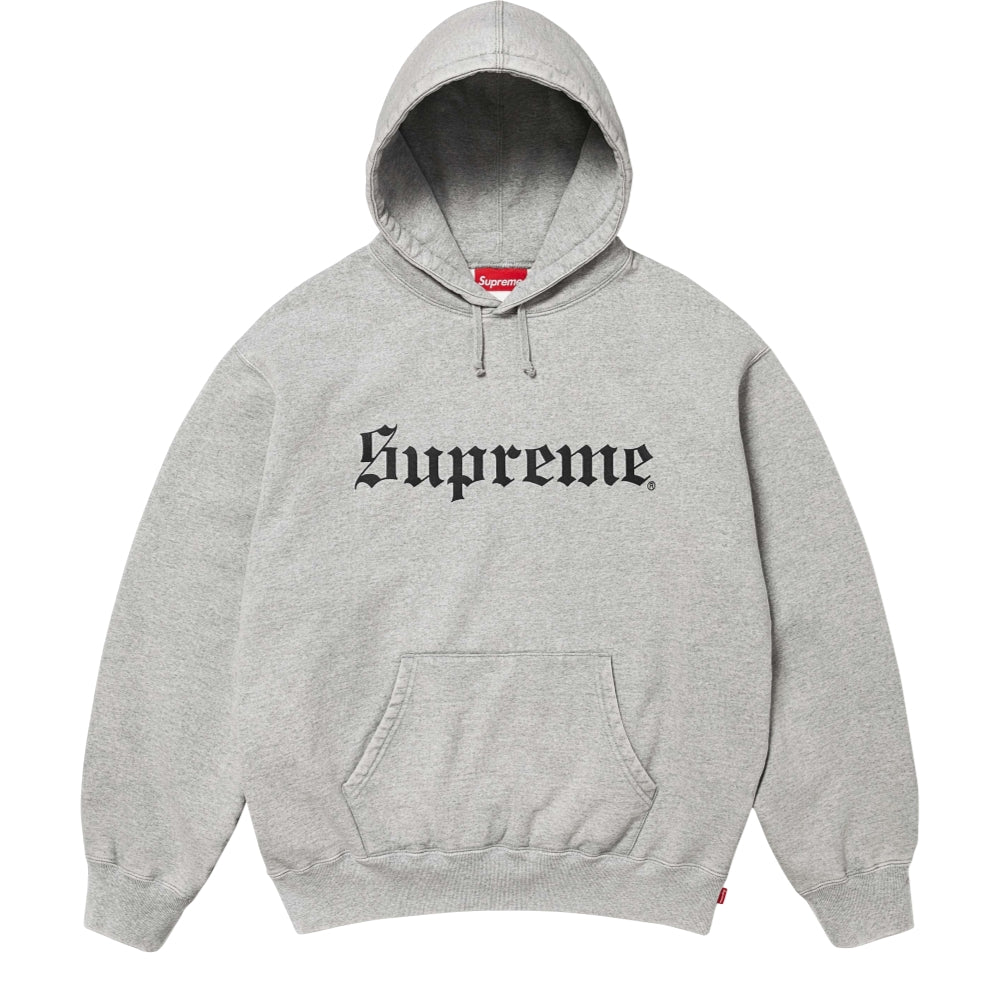 SUPREME WASHED OLD ENGLISH HOODED SWEATSHIRT-GREY