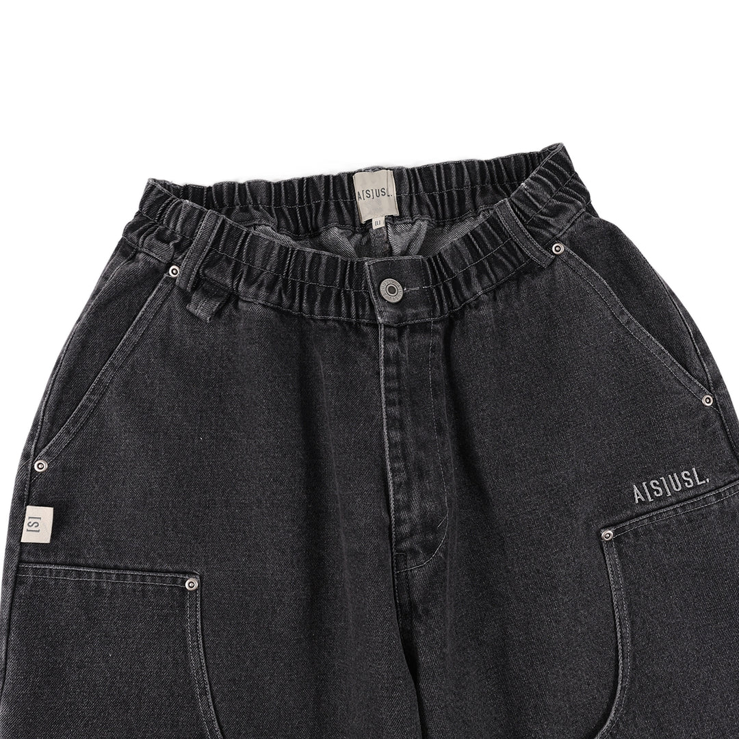 A[S]USL DENIM PATCHWORK PANTS-DENIM BLACK