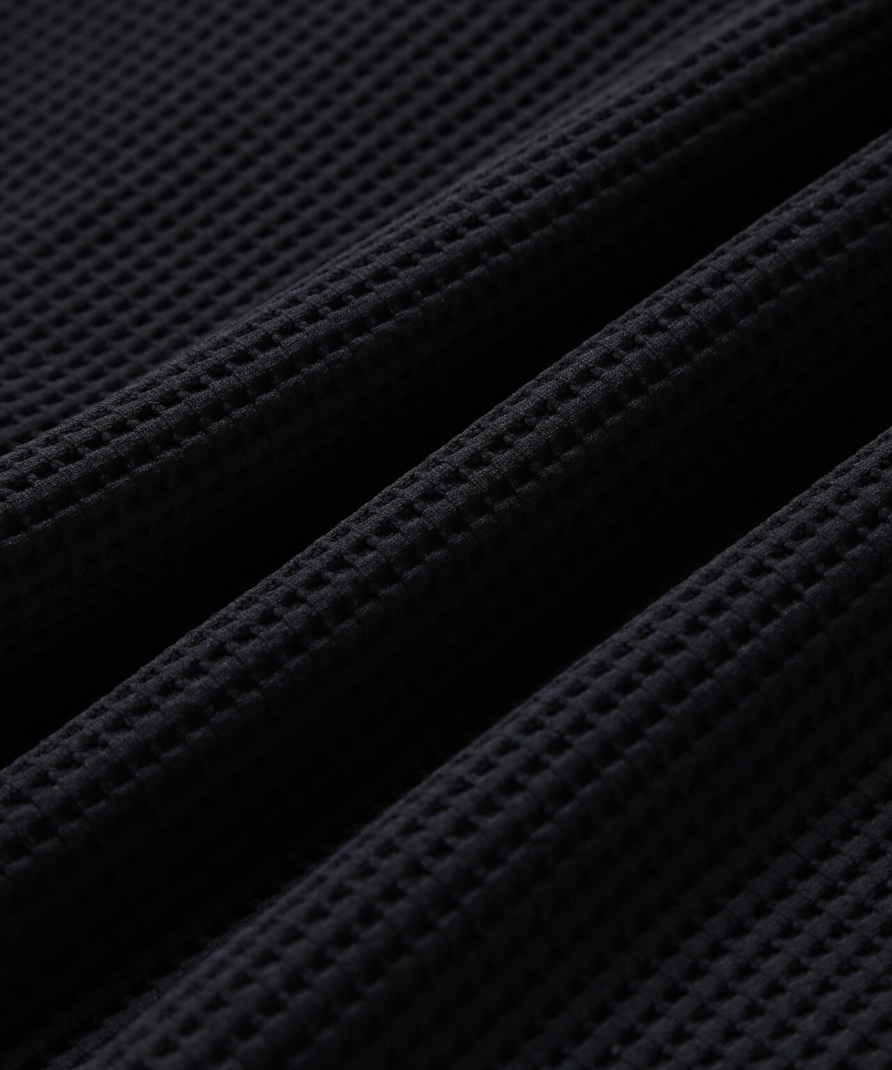AND WANDER PE WAFFLE LONG SLEEVE T-BLACK