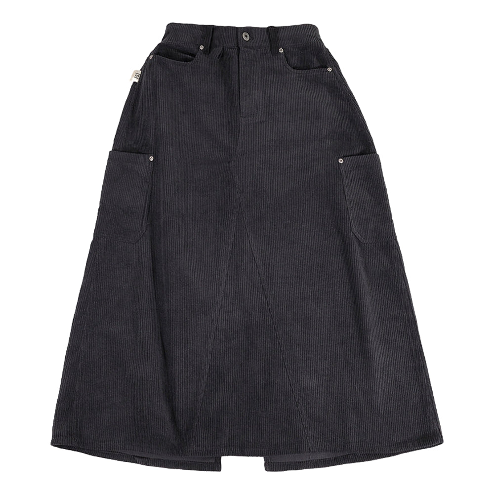 A[S]USL PATCH POCKETS A-LINE CORDUROY SKIRT-CHARCOAL