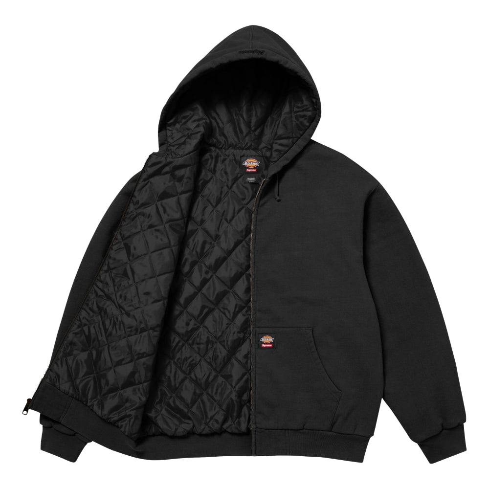 SUPREME DICKIES QUILTED LINED ZIP UP HOODED SWEATSHIRT-BLACK
