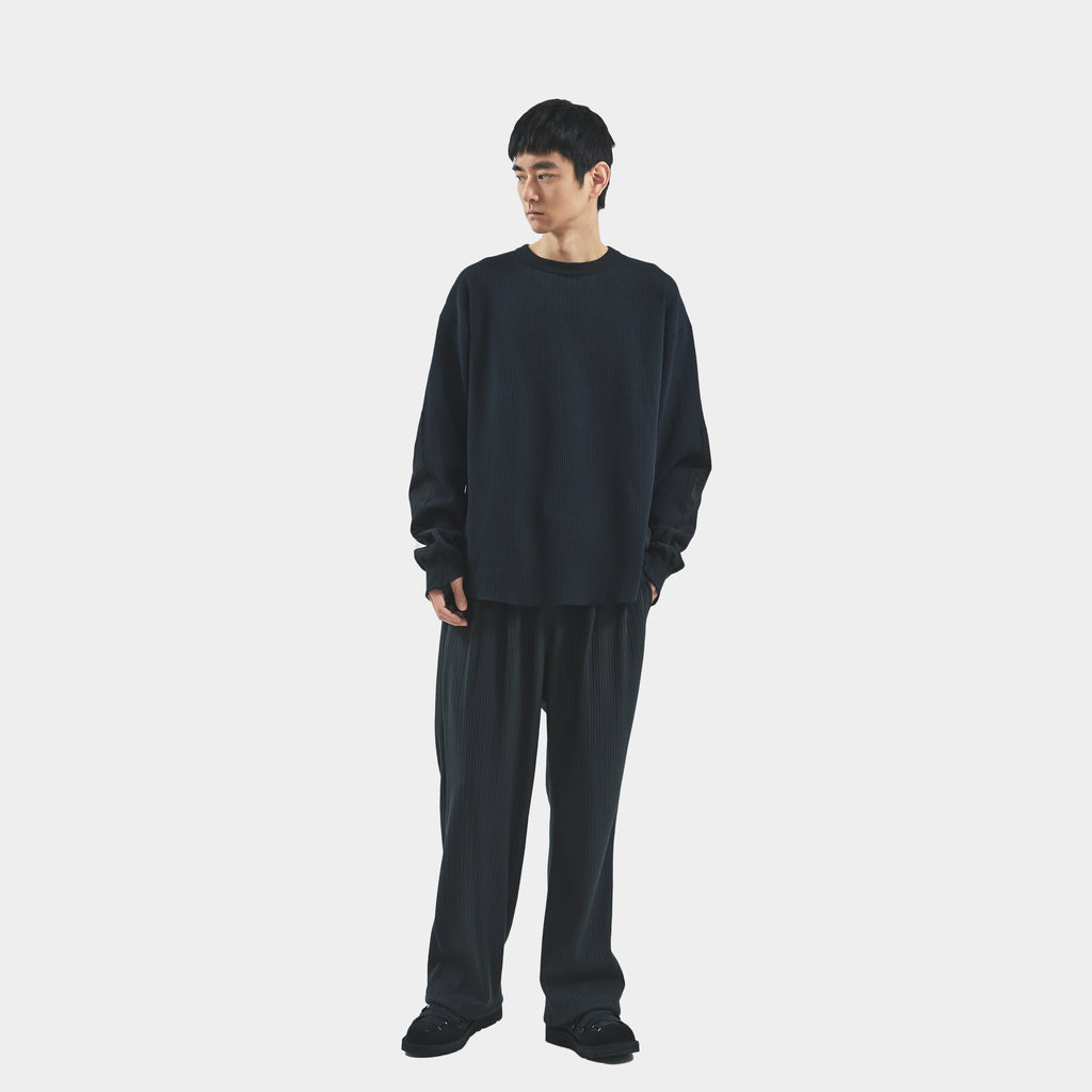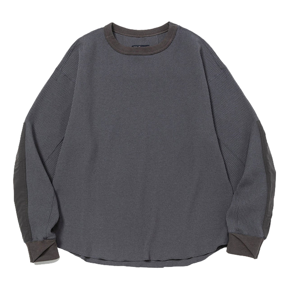 MEANSWHILE SOLOTEX WAFFLE L/S TEE-CHARCOAL