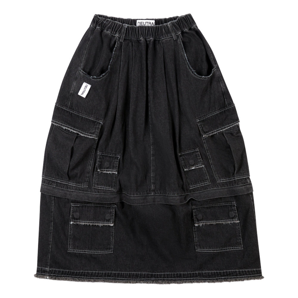 NEUTRAL SOCIETY DETACHABLE DENIM SKIRT-BLACK DENIM