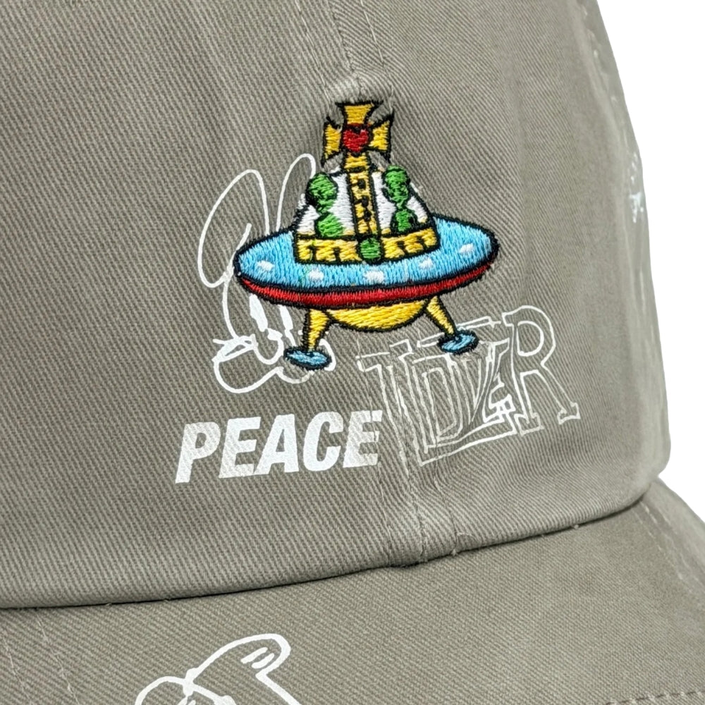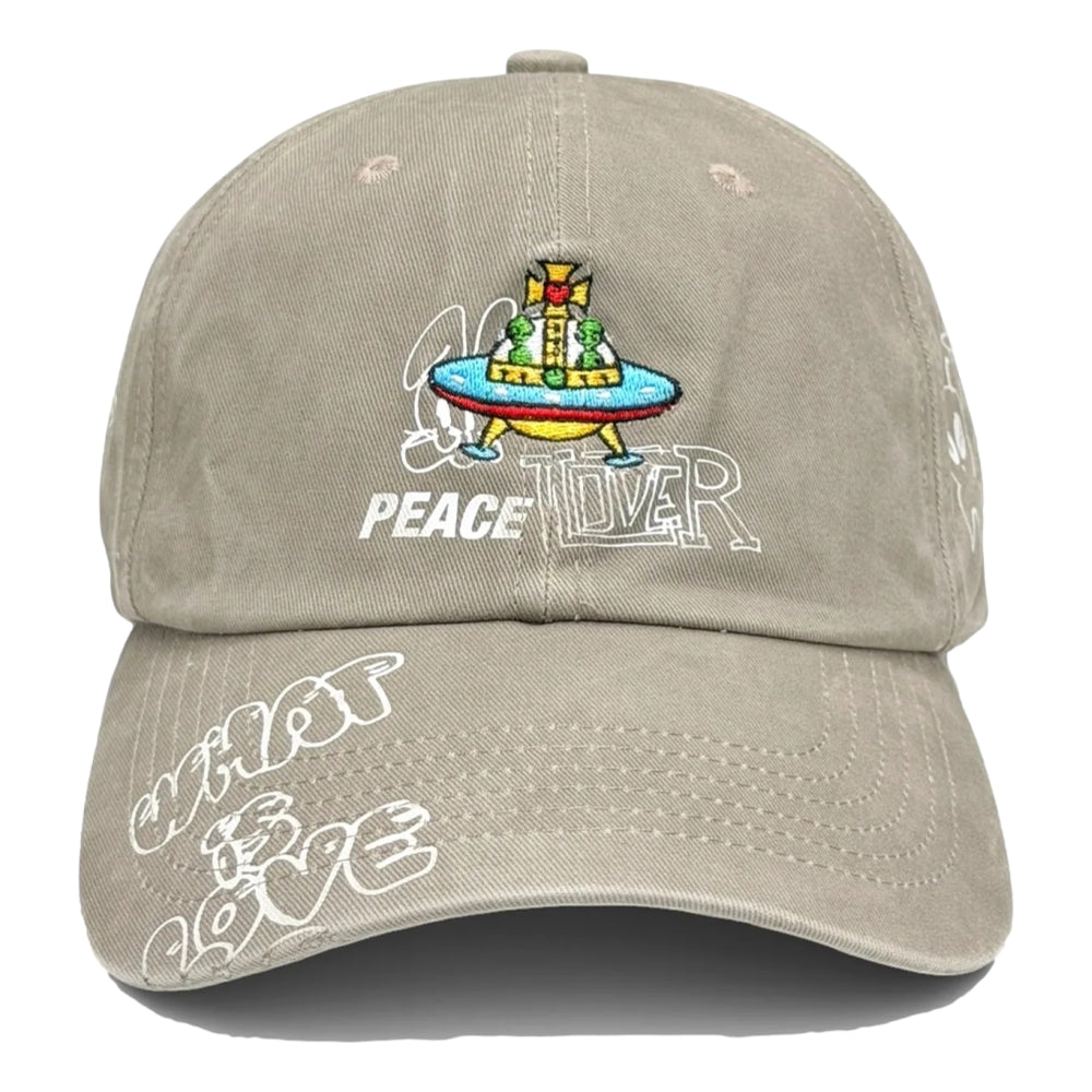 2ND CLOSET “PEACE LOVES ALIENS GRAFFITI- WASHED CAP-WASHED BEIGE