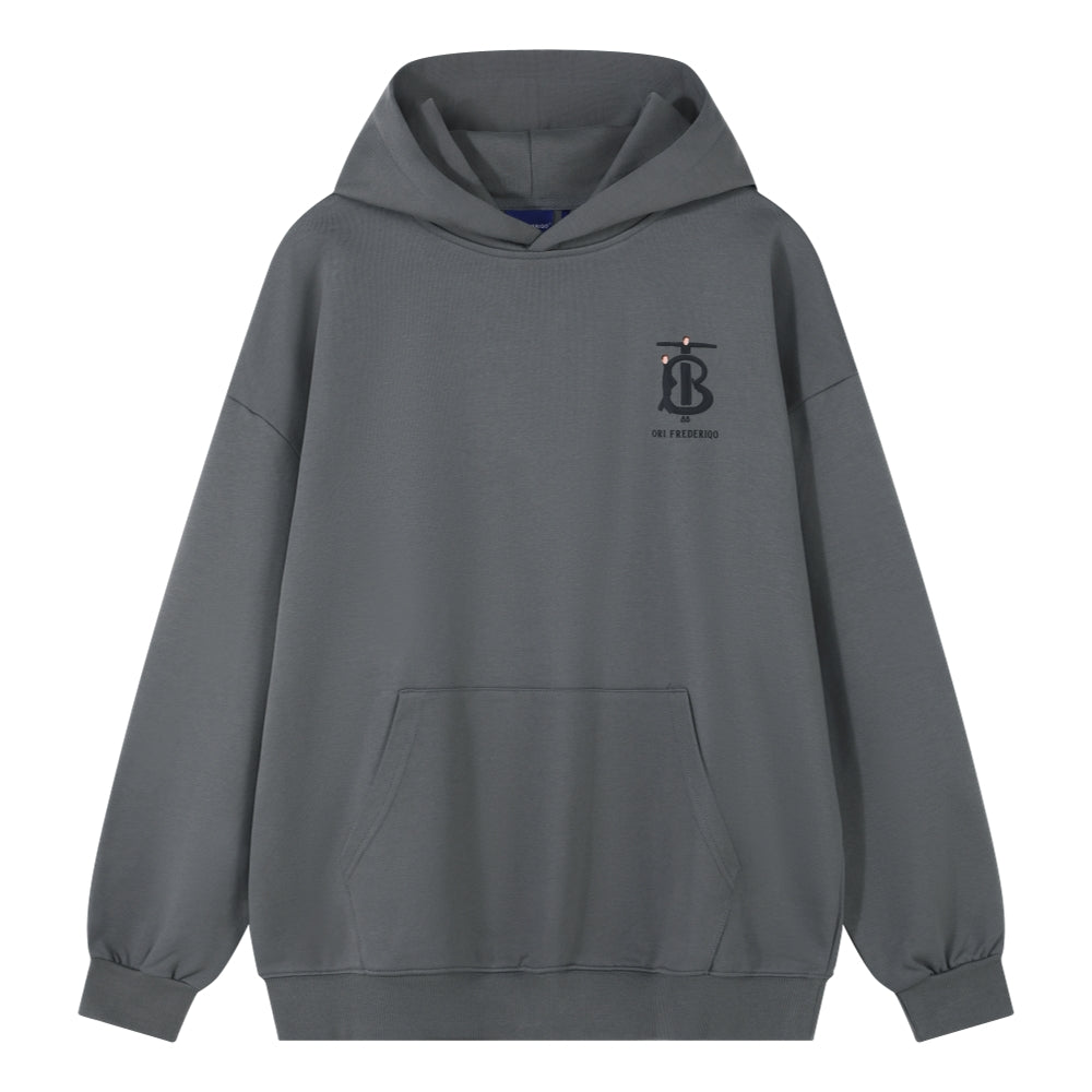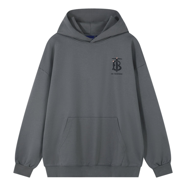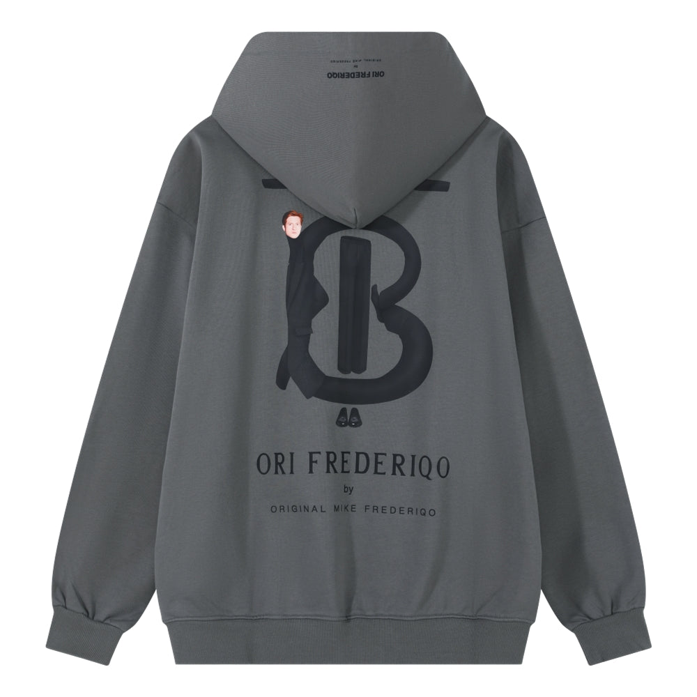ORI FREDERIQO PRINTED HOODED SWEATSHIRT-GREY