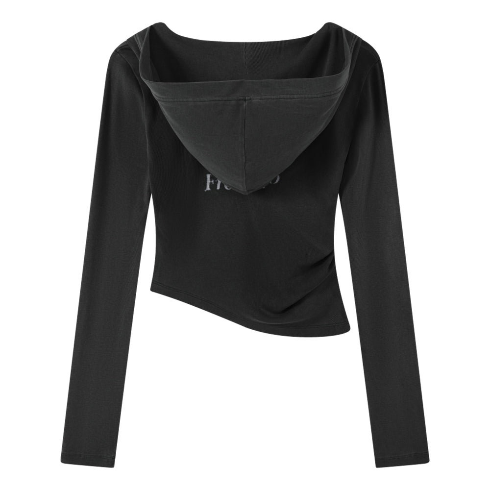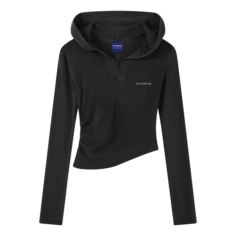ORI FREDERIQO WOMEN PRINTED HOODED LONG-SLEEVE T-SHIRT-BLACK