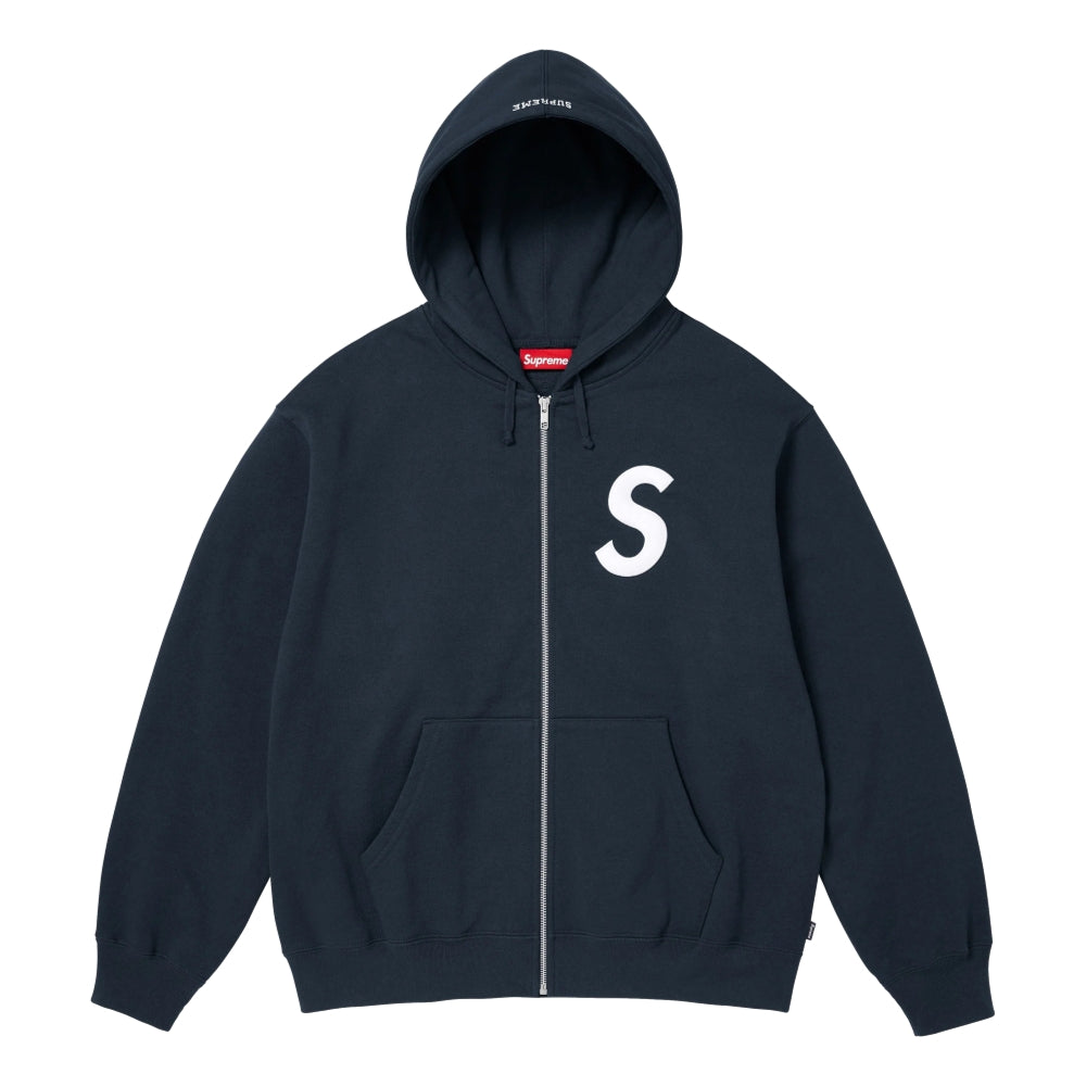 SUPREME S LOGO ZIP UP HOODED SWEATSHIRT-NAVY