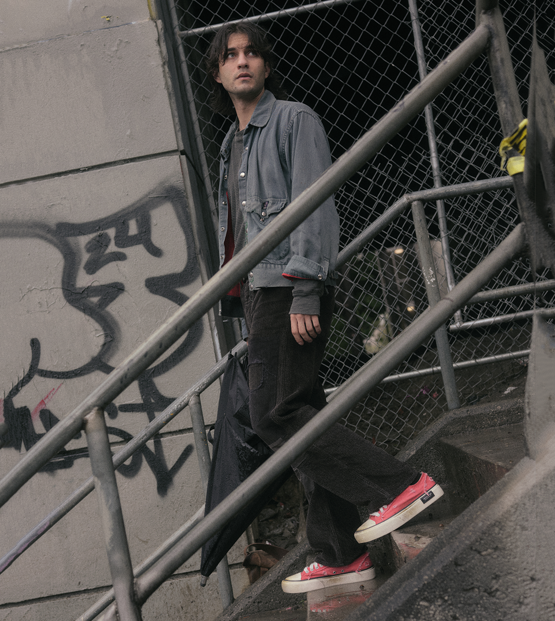 Distressed, smudged and raw edges throughout