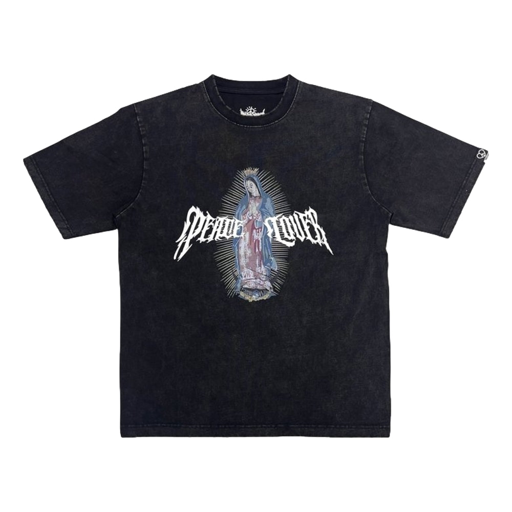 2ND CLOSET "PEACE MARIA" PRINTED WASHED T-SHIRT-BLACK