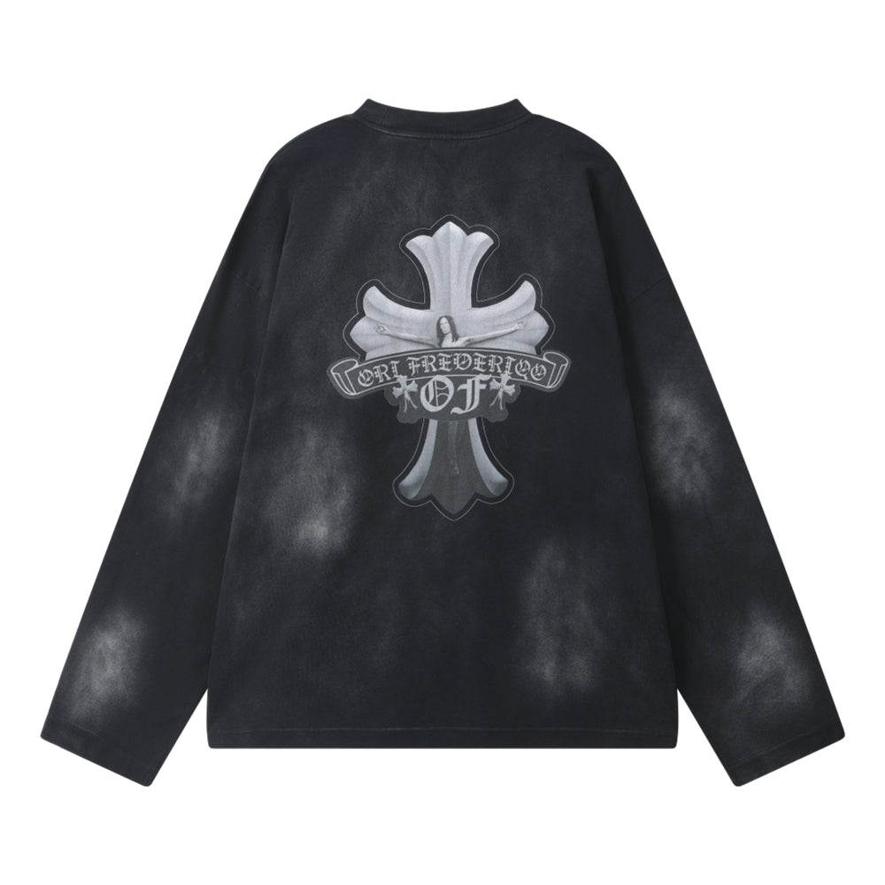 ORI FREDERIQO WASHED PRINT LONG-SLEEVE T-SHIRT-BLACK