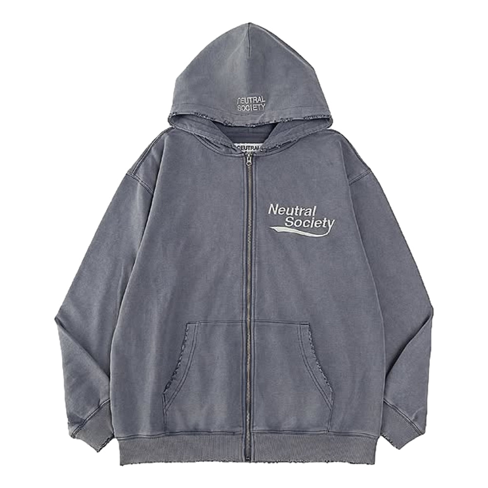 NEUTRAL SOCIETY SNOW WASH OVERSIZE ZIP UP HOODIES-WASHED BLUE