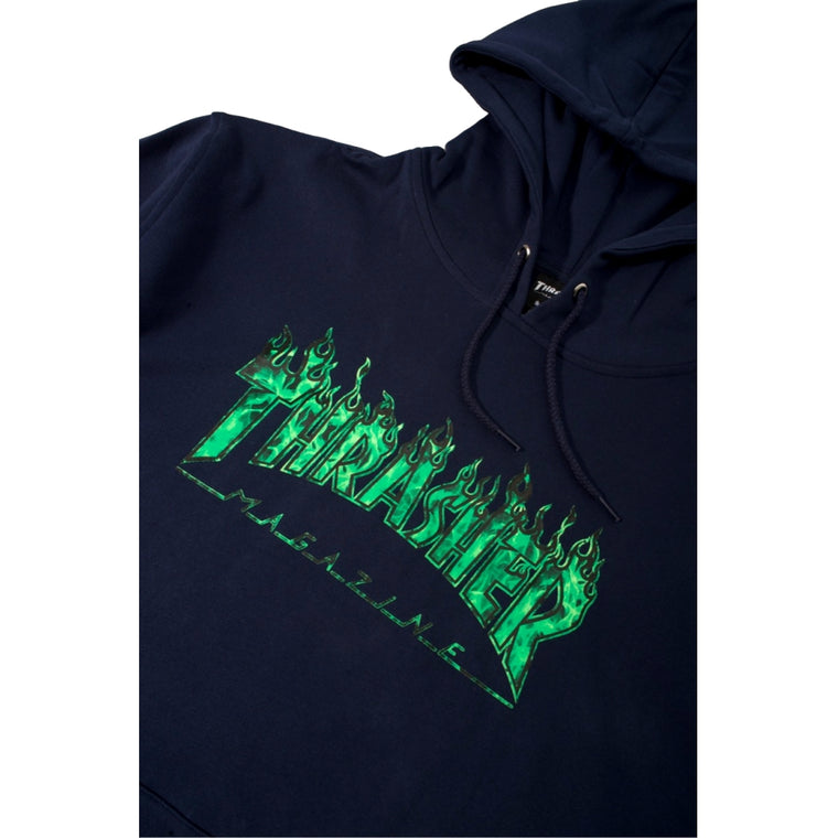 THRASHER(JAPAN) GHOST FLAME HOODED-NAVY