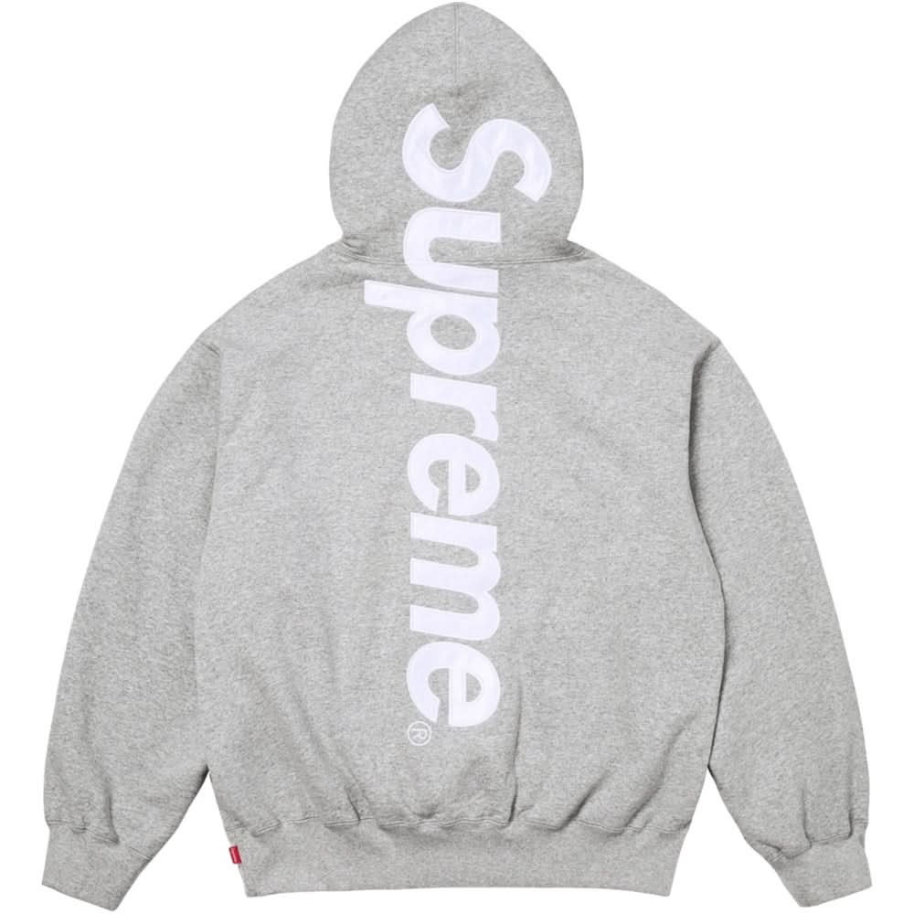SUPREME SATIN APPLIQUE HOODED SWEATSHIRT-HEATHER GREY