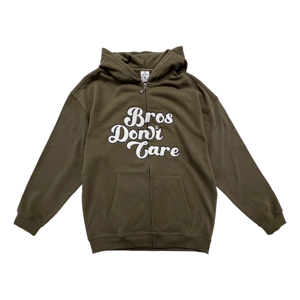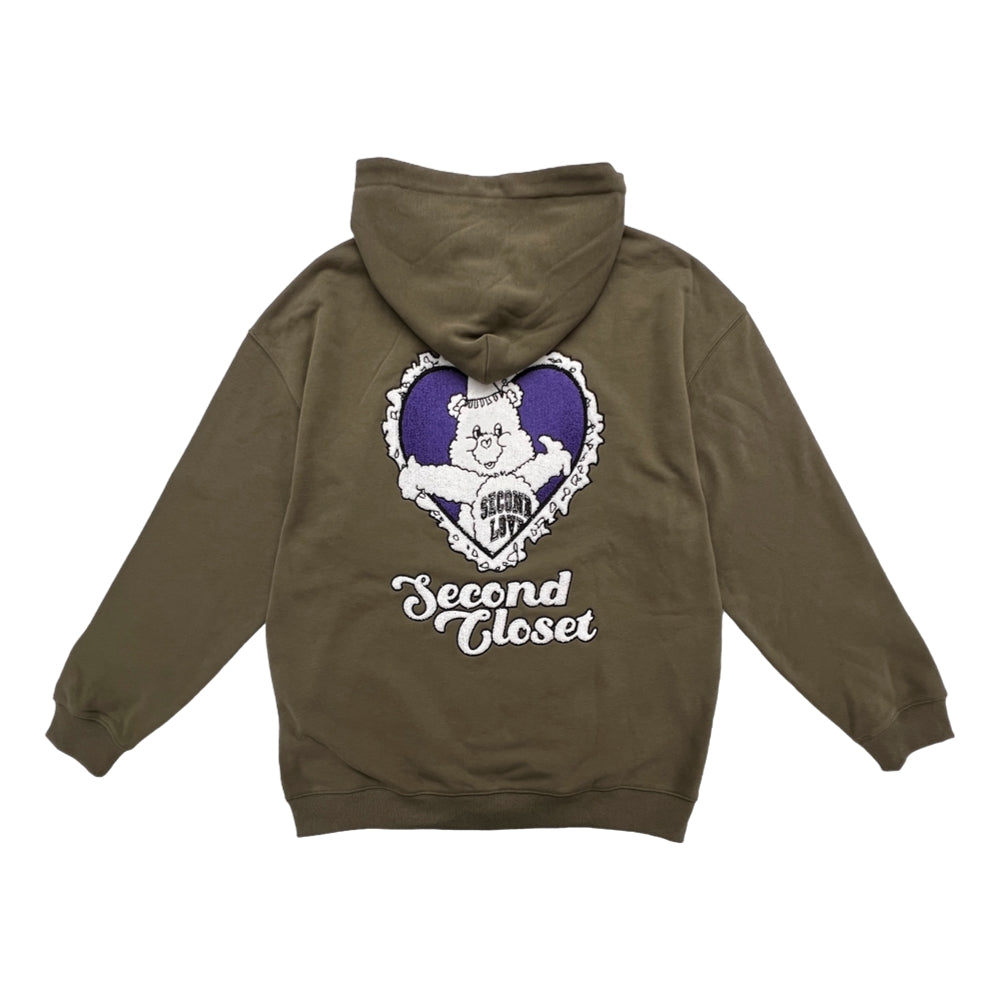 2ND CLOSET DONT CARE BEAR ZIP UP HOODIE-OLIVE