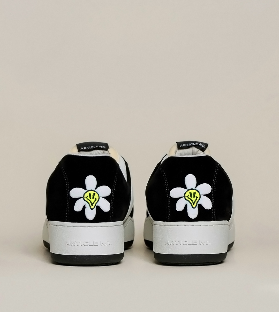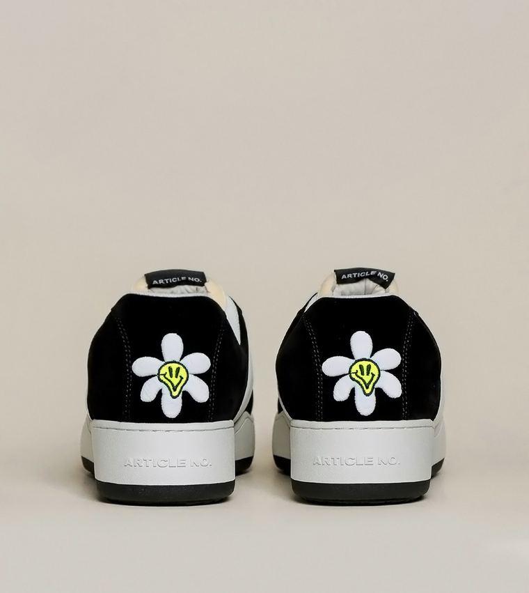 • Signature sunflower embroidered at heels