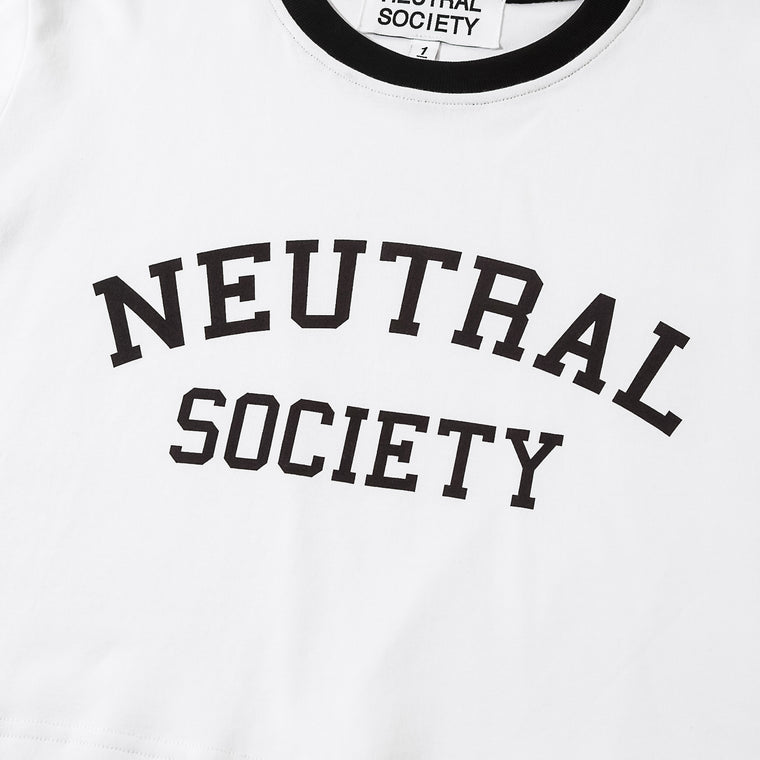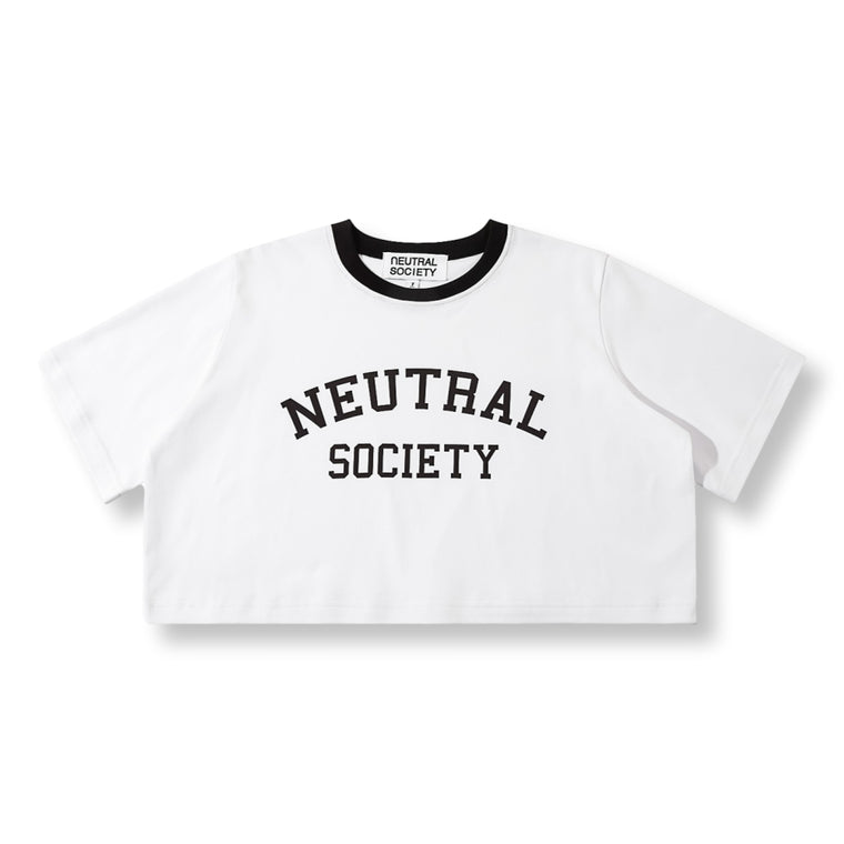 NEUTRAL SOCIETY COLLEGE CROPPED WIDE TEE-WHITE
