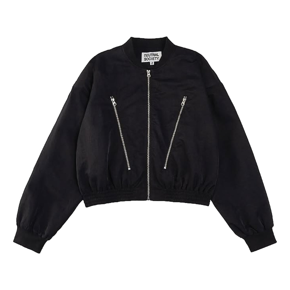 NEUTRAL SOCIETY CROPPED FLIGHT JACKET-BLACK
