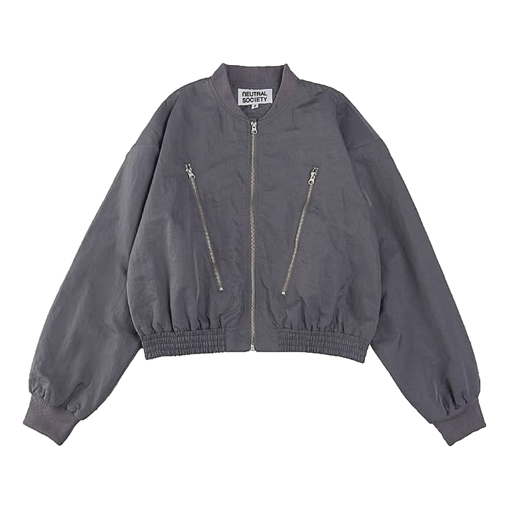 NEUTRAL SOCIETY CROPPED FLIGHT JACKET-DARK GREY