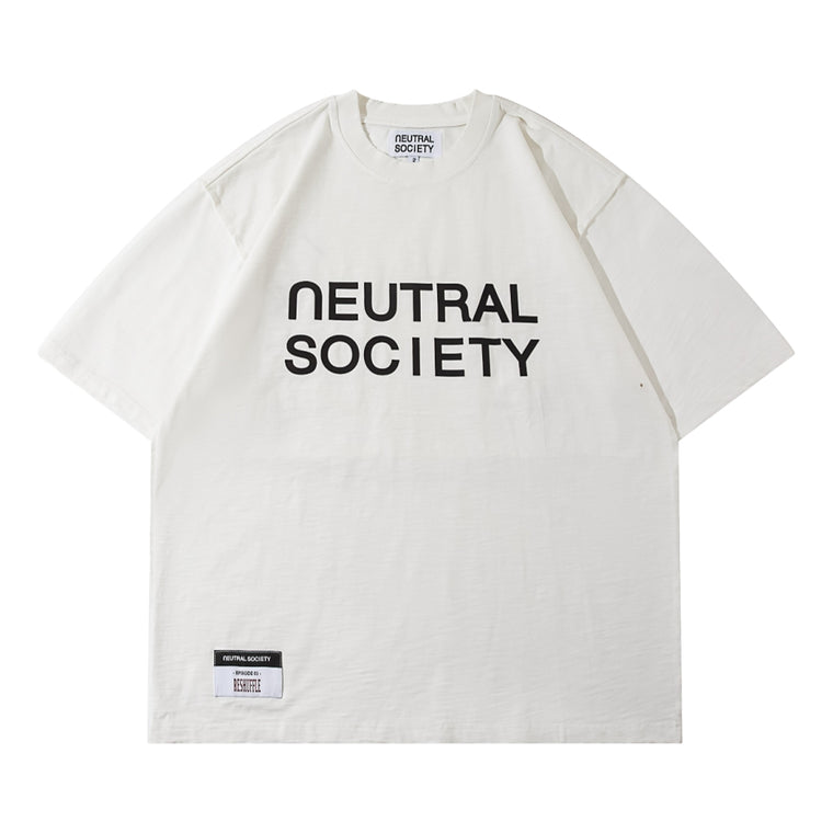 NEUTRAL SOCIETY RAW EDGE NS LOGO BIG TEE-WHITE