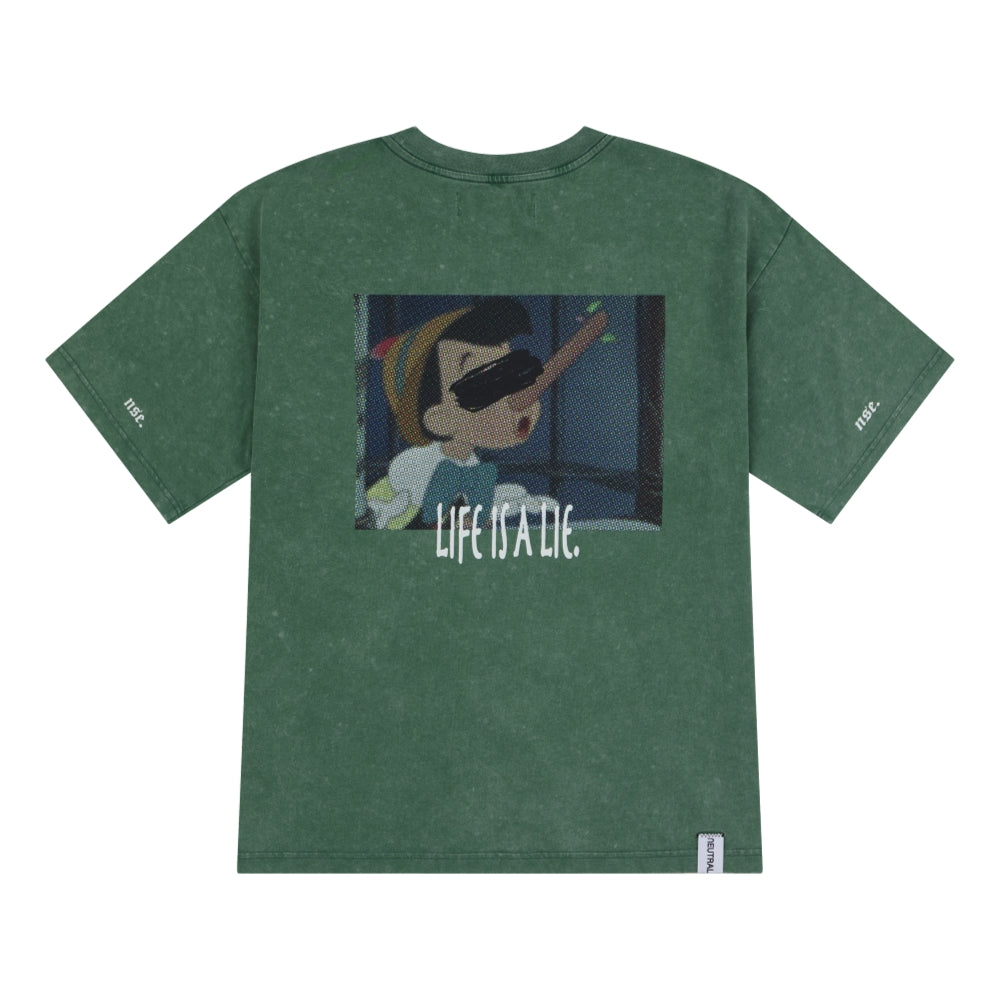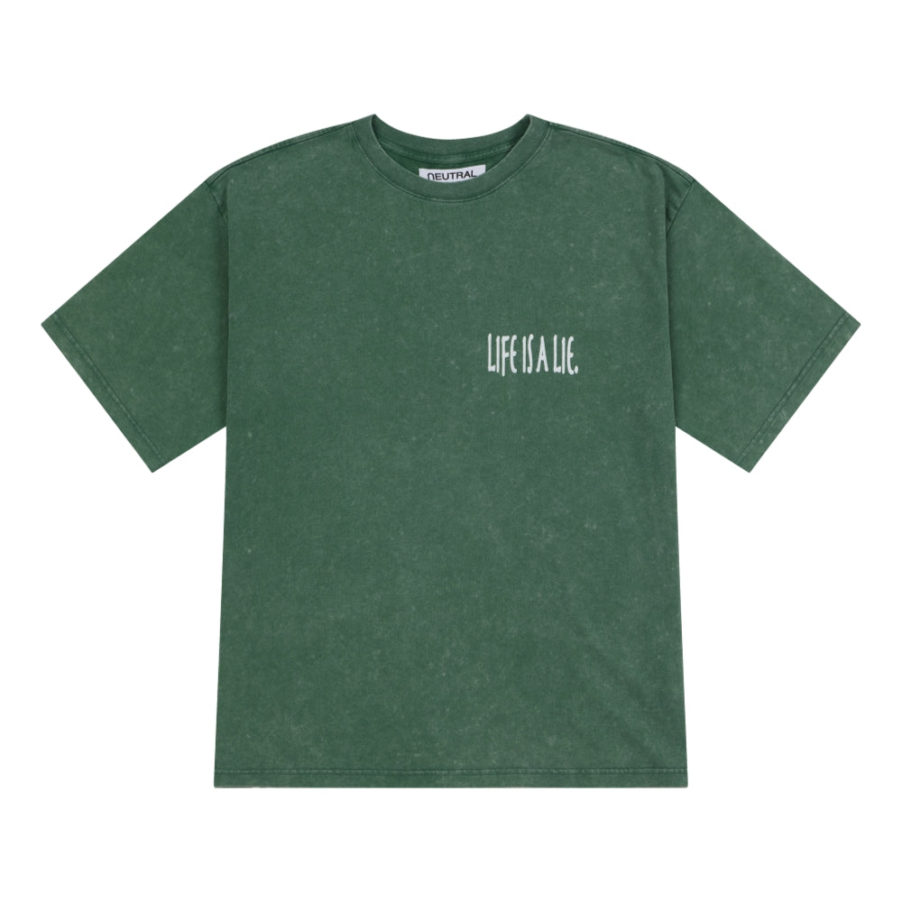 NEUTRAL SOCIETY SNOW WASH LIFE IS A LIE TEE-DARK GREEN