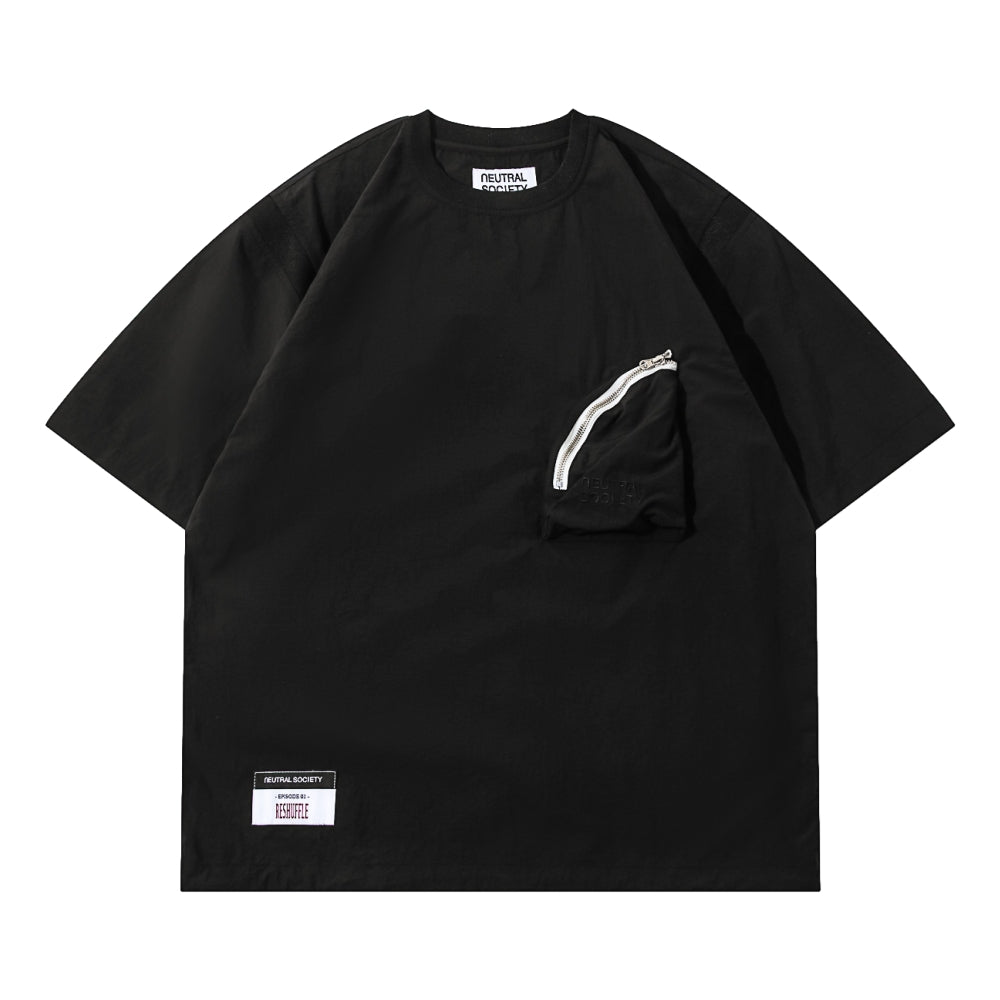 NEUTRAL SOCIETY ZIPPER POCKET TECH. BIG TEE-BLACK
