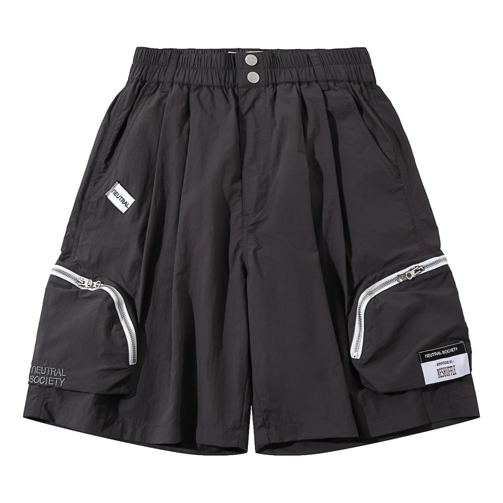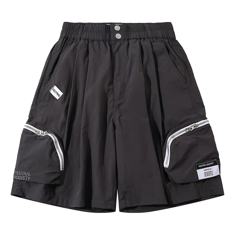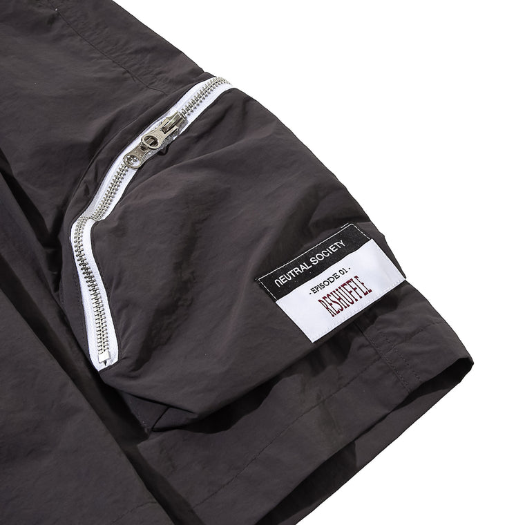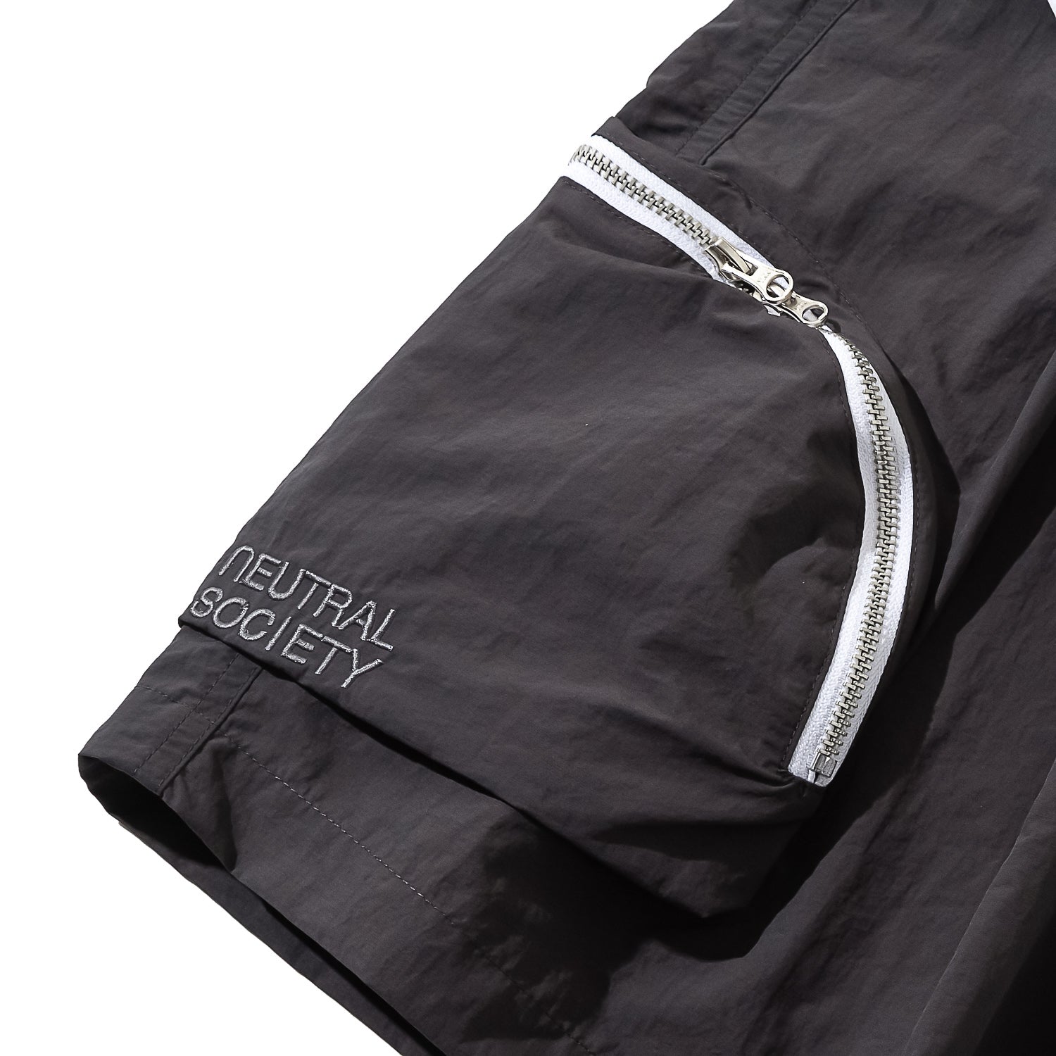 NEUTRAL SOCIETY ZIPPER POCKET TECH. SHORTS-DARK GREY