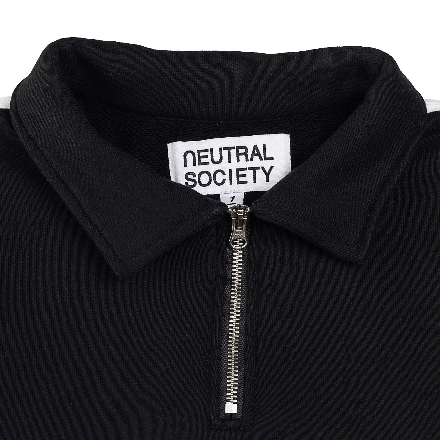 NEUTRAL SOCIETY ZIPPER POLO SWEATSHIRT-BLACK