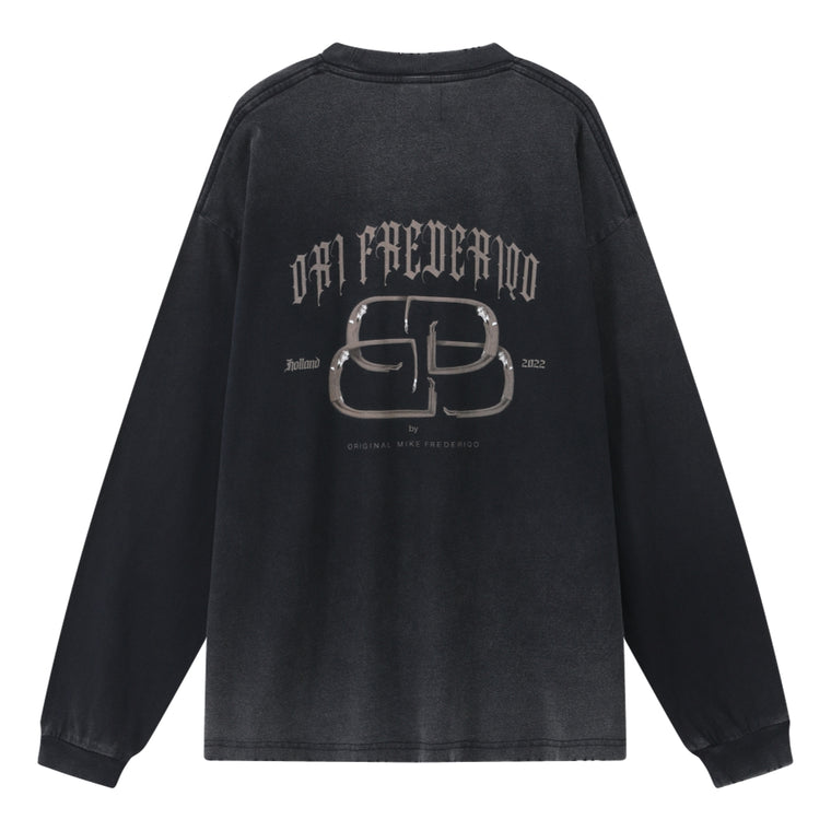 ORI FREDERIQO OVERDYED PRINTED LS TEE-BLACK