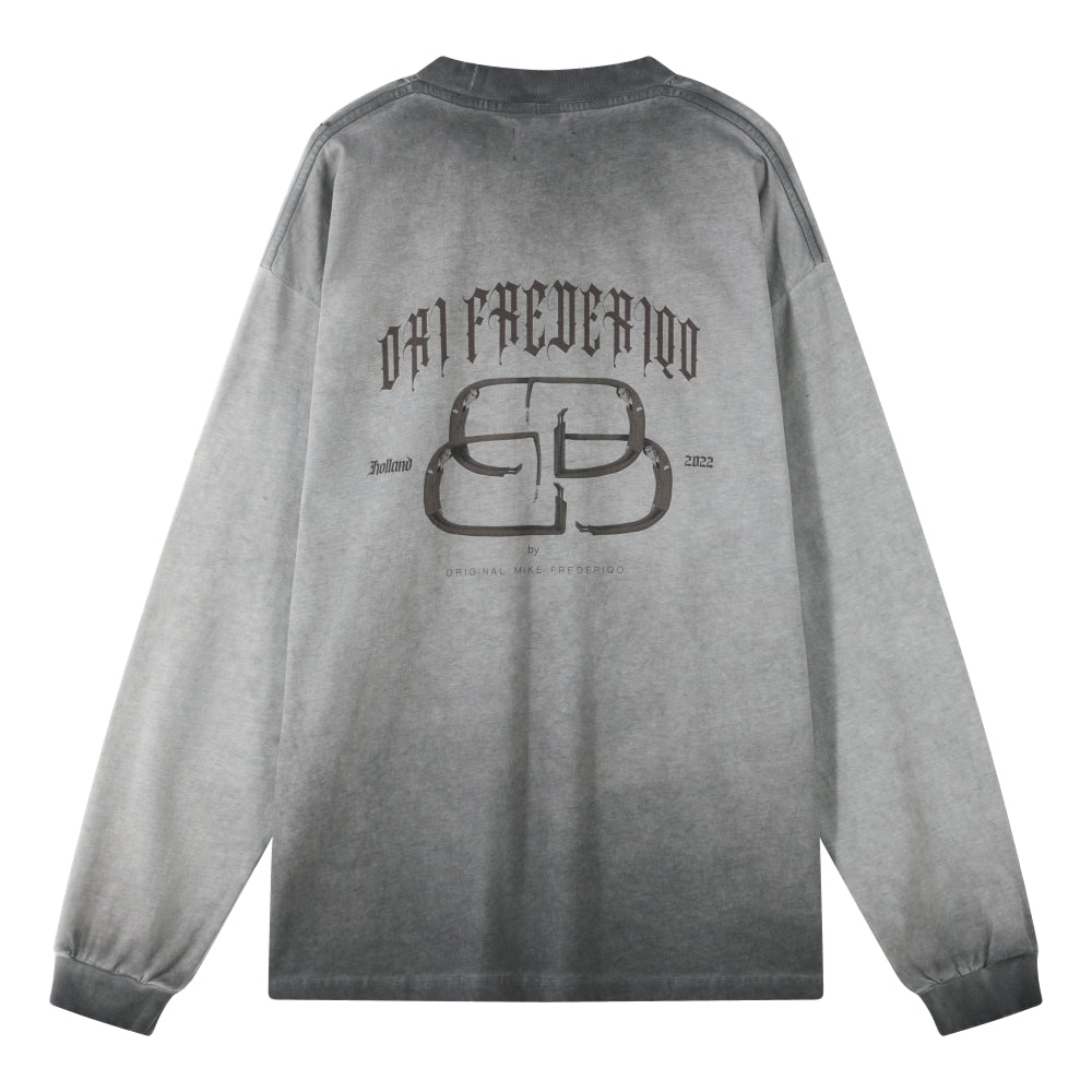 ORI FREDERIQO OVERDYED PRINTED LS TEE-GREY
