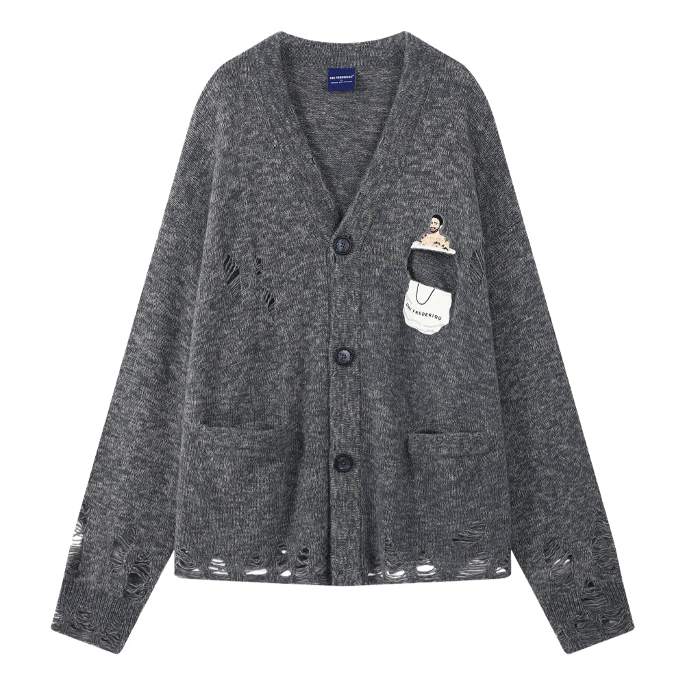 ORI FREDERIQO POCKET KNIT CARDIGAN-GREY