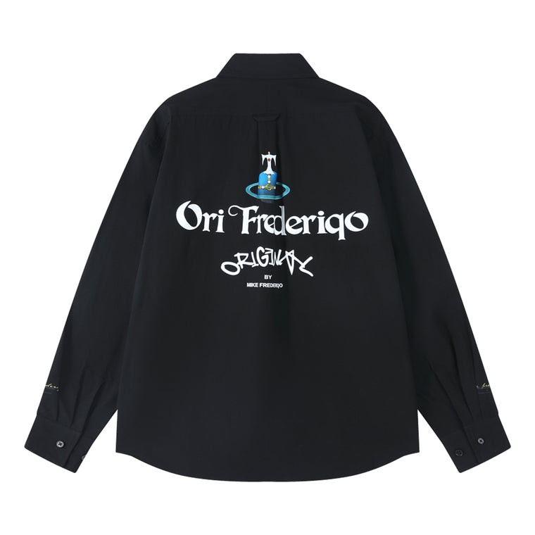 ORI FREDERIQO PRINTED LONG SLEEVE SHIRT-BLACK