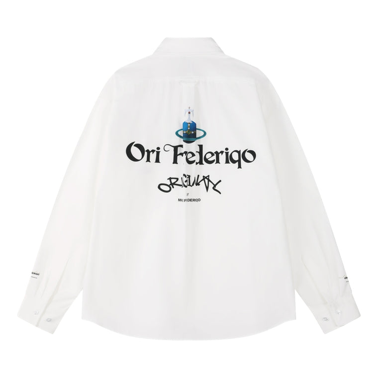 ORI FREDERIQO PRINTED LONG SLEEVE SHIRT-WHITE