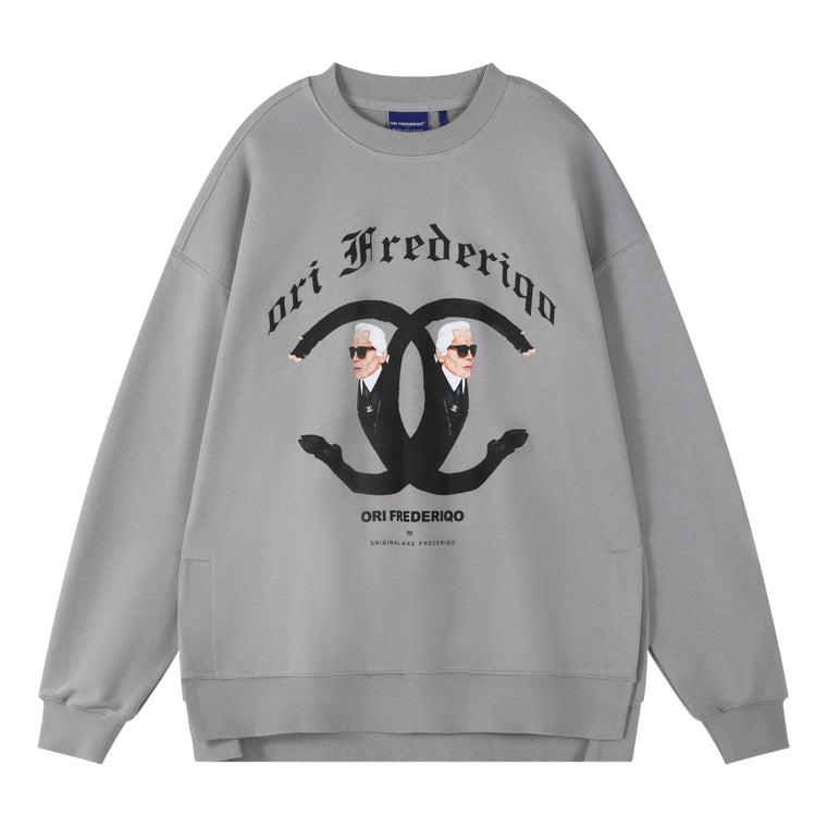 ORI FREDERIQO PRINTED SLIT SWEATSHIRT-GREY