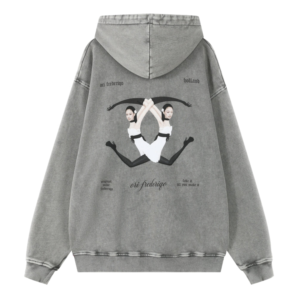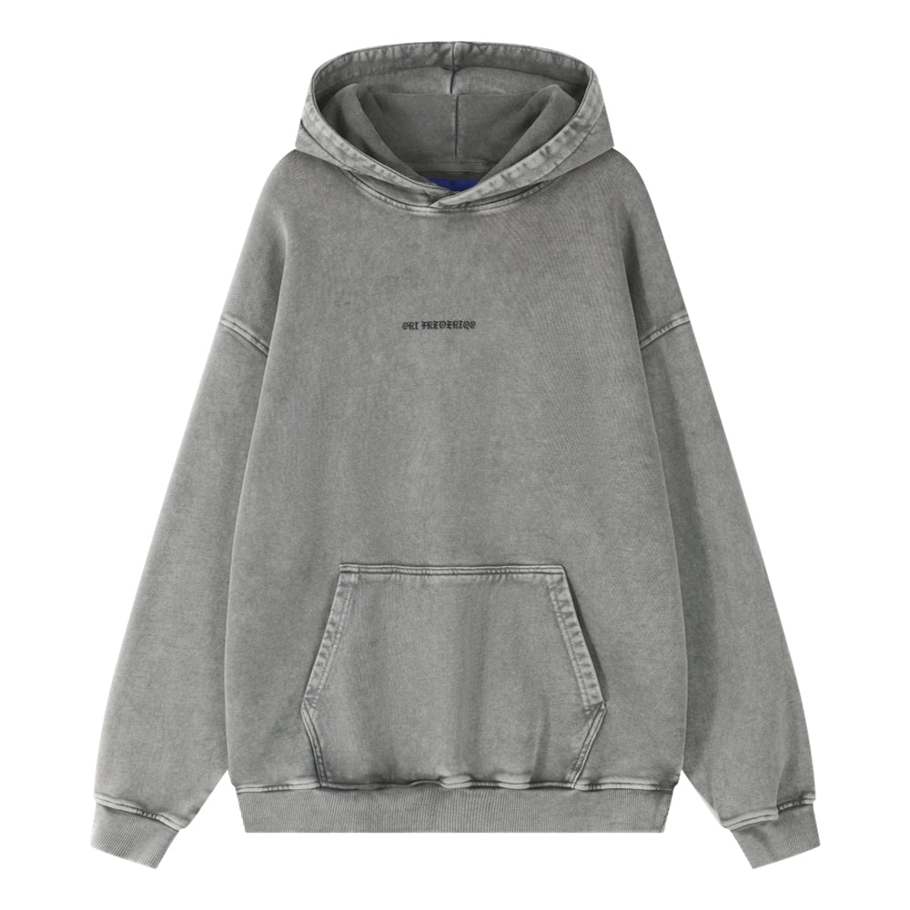 ORI FREDERIQO WASHED PRINTED ZIP UP TERRY HOODED SWEATSHIRT-GREY