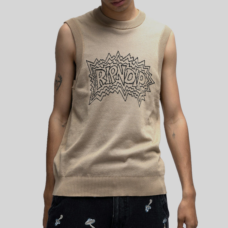 RIPNDIP SHOCK KNIT SWEATER VEST-NATURAL