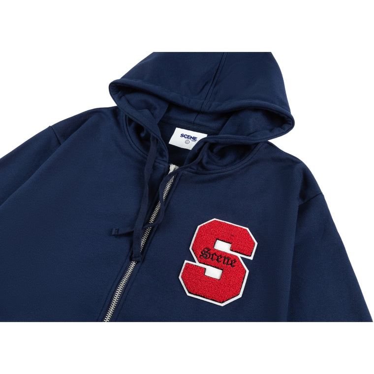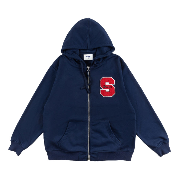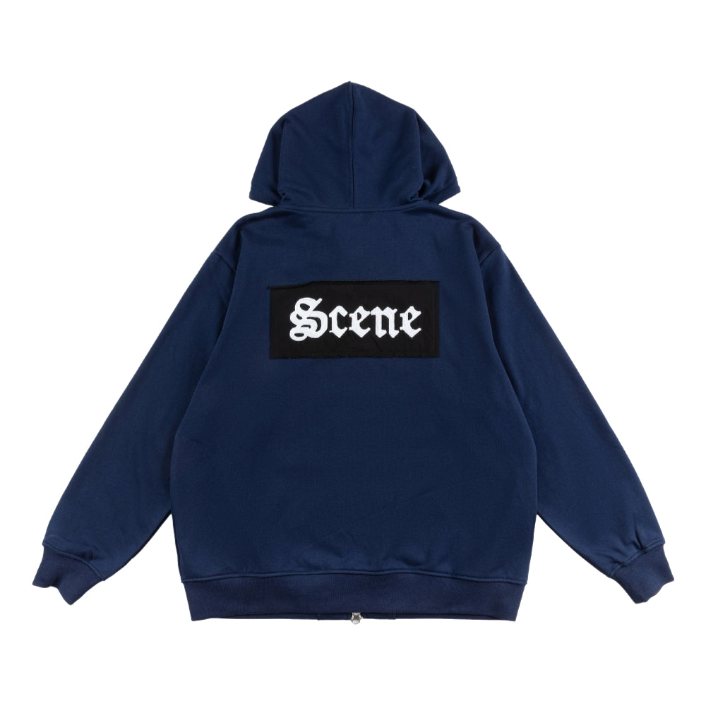 SCENE BY ICE FIRE WASHED ZIP UP HOODIE-NAVY/RED