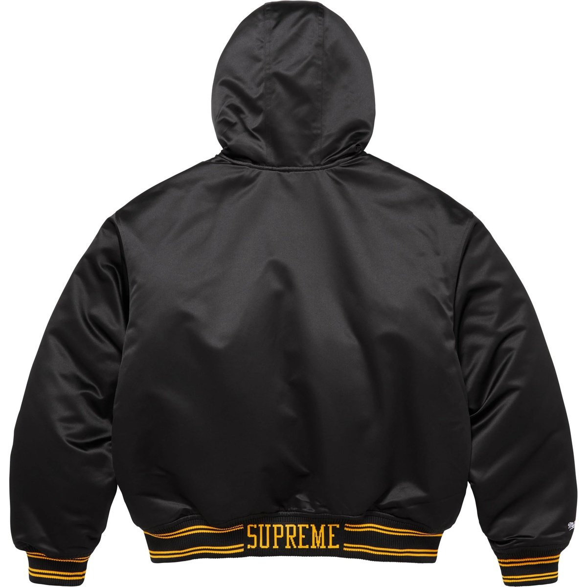 SUPREME MITCHELL & NESS® LINED HOODED SATIN VARSITY JACKET-BLACK